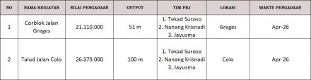 Dalam rangka melaksanakan ketentuan pasal 21 ayat (1) Peraturan Bupati (Perbup) Kabupaten Bantul Nomor 60 Tahun 2022 tentang Tata Cara Pelaksaan Kegiatan Pengadaan Barang/Jasa di Kalurahan sebagaimana dimaksud dalam Pasal 20 diumumkan oleh Lurah melalui media informasi yang mudah diakses oleh masyarakat, paling sedikit pada papan pengumuman Kalurahan, website atau media sosial Pemerintah Kalurahan sebelum pelaksanaan pengadaan dimulai. Rencana Pengadaan Barang dan Jasa di Kalurahan Donotirto Kapanewon Kretek Kabupaten Bantul yang akan dilaksanakan adalah sebagai berikut: