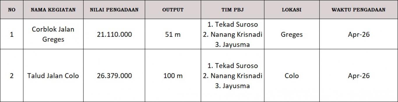 PENGUMUMAN PENGADAAN BARANG DAN JASA KALURAHAN DONOTIRTO TAHUN 2026
